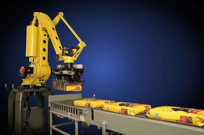 開いた口袋の自動パッキング及びパレットで運搬するライン