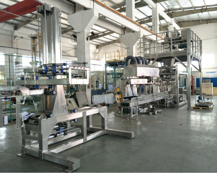 システムは量的な自動に重量を量ることに加えられ、満ち、練り、集まって小麦粉の工場の粉材料または餌の形のような材料のための時重量を量れば、そして運ぶ手動助手とステッチし、/熱シーリング。