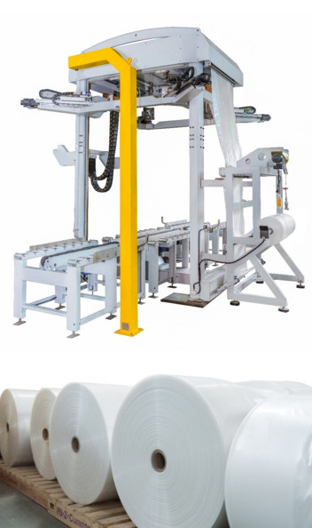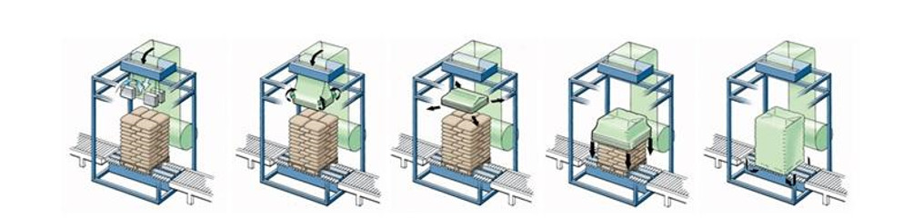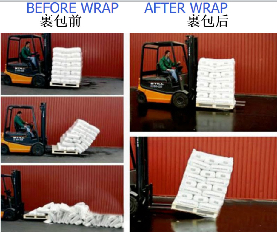 熱-縮みやすいフィルムの包装および伸張の覆いの実装技術、に基づいて成長して従来の熱の利点を吸収した-縮みやすいフィルムの包装および伸張の覆いのフィルムに包装の効果、速度を等包む包装の費用節約で、および明らかな利点がある。それはさまざまな企業のパレット交通機関の包装で広く利用されている。