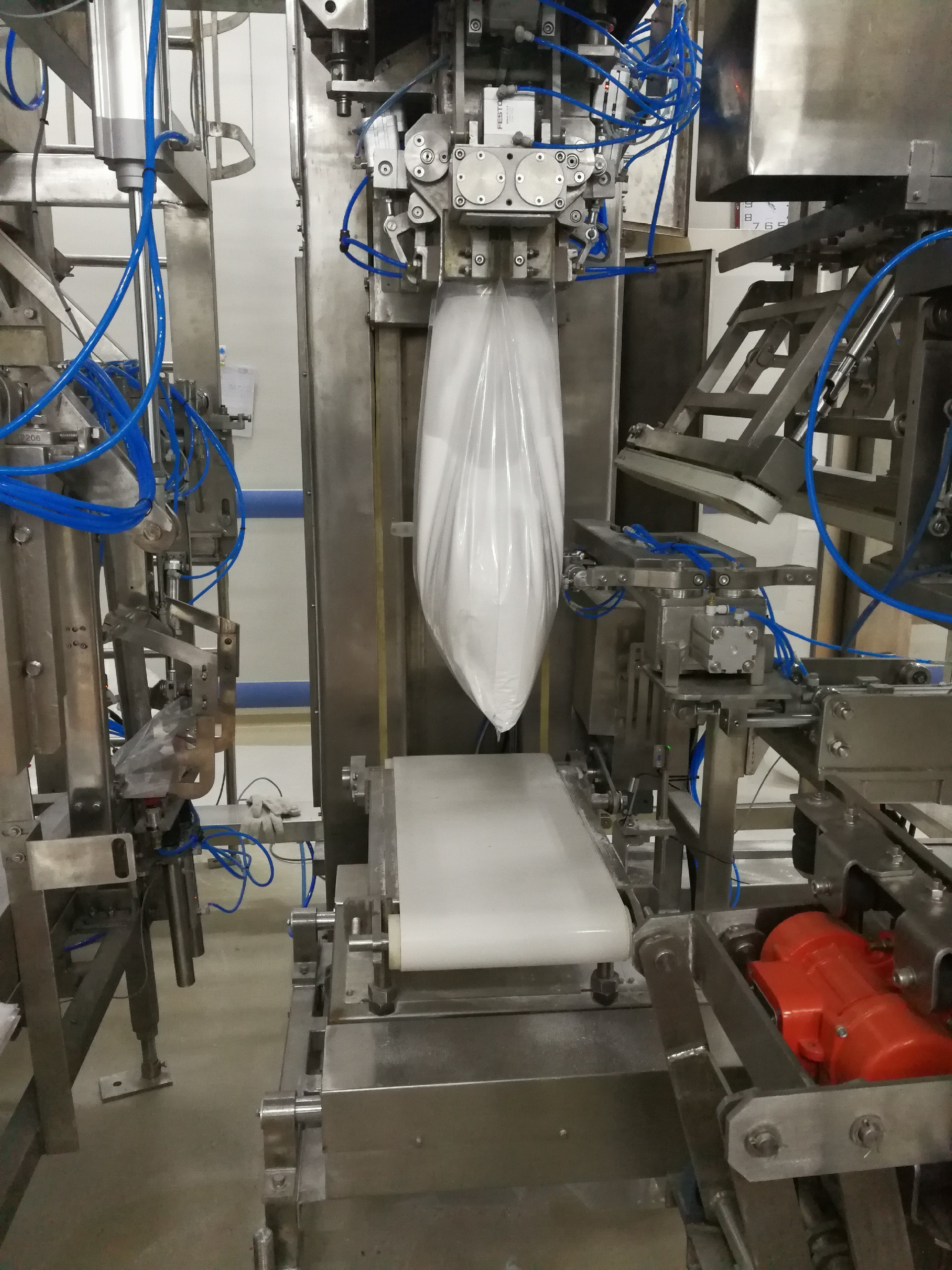 プロダクト持ち上がり、測定し、詰物、袋開始、シーリング、そして出力。